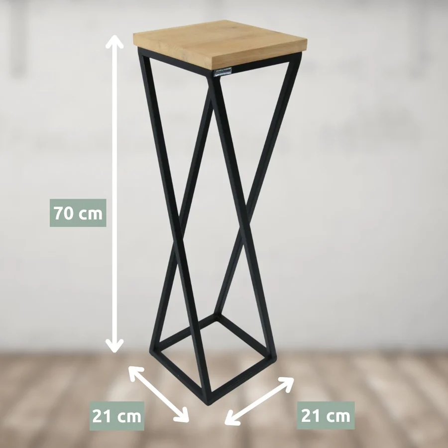 Das Metallgestell des Pflanzenständers ist aus robustem Stahl gefertigt, dessen Oberfläche für eine lange Haltbarkeit pulverbeschichtet wurde. Im Zusammenspiel mit dem massivem Eichenholz erhält der Dekoständer den zeitlosen Loft- und Industriestil verliehen.