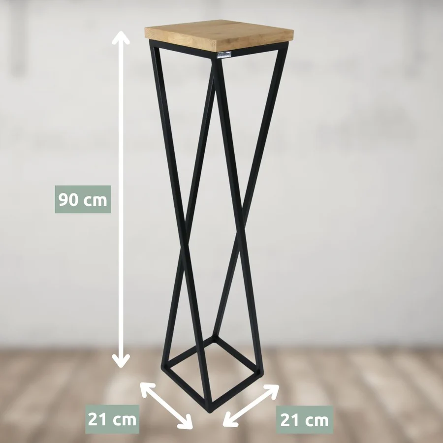 Das Metallgestell des Pflanzenständers ist aus robustem Stahl gefertigt, dessen Oberfläche für eine lange Haltbarkeit pulverbeschichtet wurde. Im Zusammenspiel mit dem massivem Eichenholz erhält der Dekoständer den zeitlosen Loft- und Industriestil verliehen.