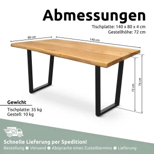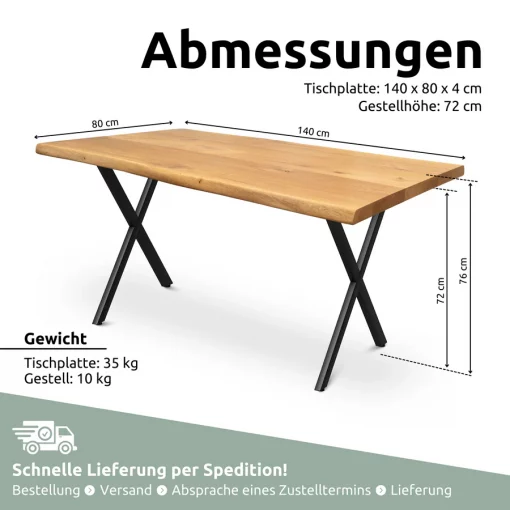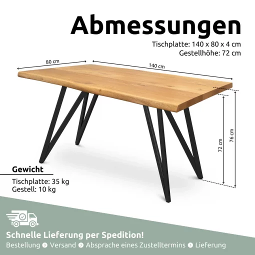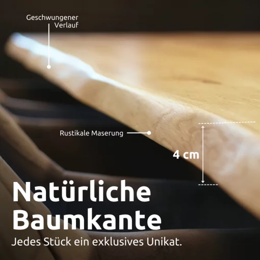 Eiche Massivholztisch I Esszimmer | Baumkante | 140x80cm