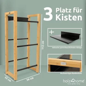 Getränkekistenregal Bambus inkl. pulverbeschichteter Ablage I Schwarz | 3 Kisten