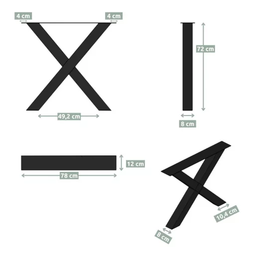 Hora X-Tischbeine 1 Paar (2 Stück) | schwarz pulverbeschichtet