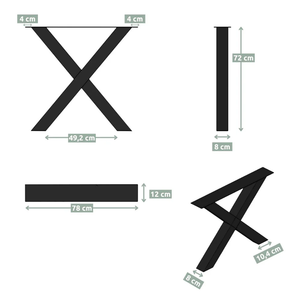 Industrielles X-Gestell mit Pulverbeschichtung für vielseitiges Loft-Design I Premium Tischbeine