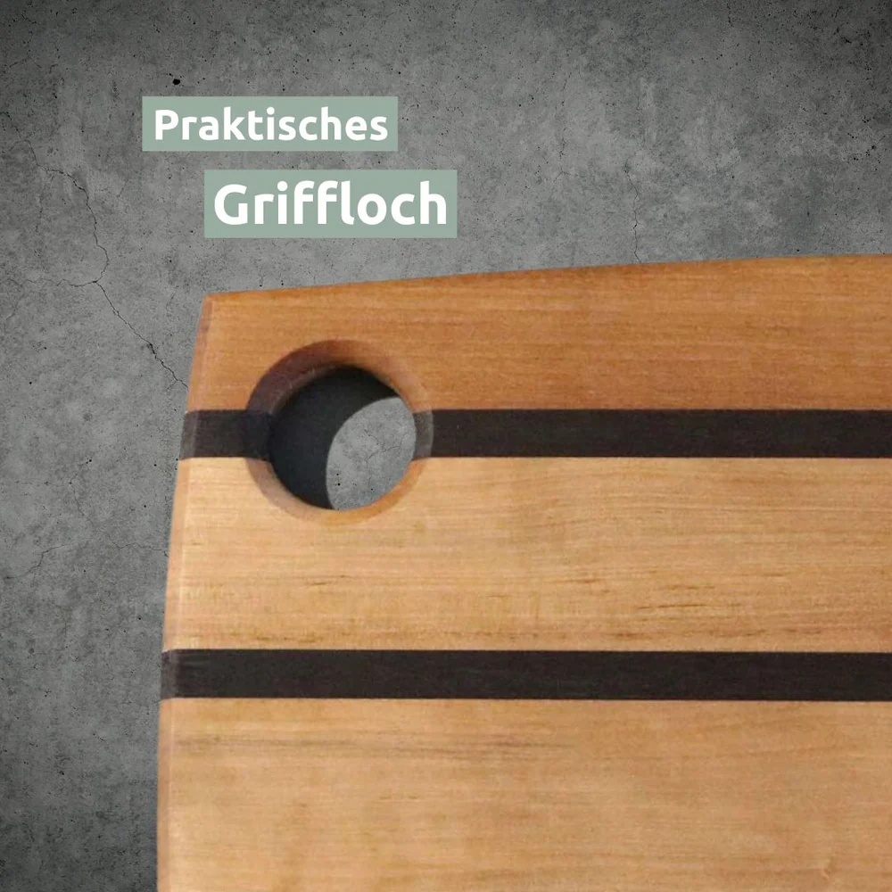 - NATÜRLICHES DESIGN: Das verwendete Holz sowie die handgearbeitete Herstellung für das Schneidebrett garantieren ein zeitloses und elegantes Design, an dem Du stets großes Gefallen finden werden. Das Holzbrett ist daher eine ideale Erweiterung für Ihre Kücheneinrichtung.