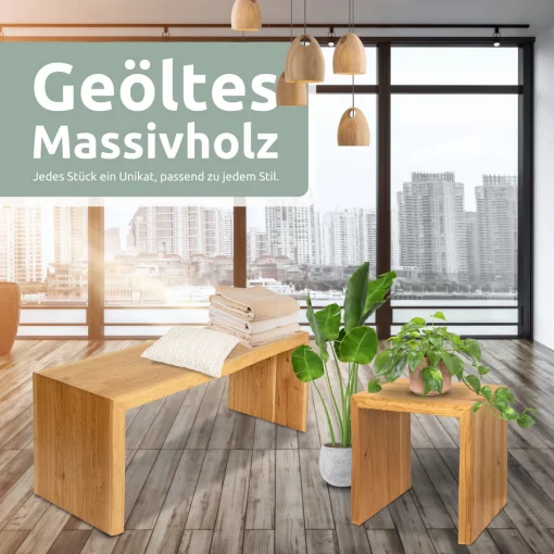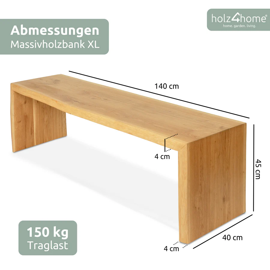 Massivholz Hocker I Bank aus Eiche mit Baumkante | XL