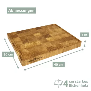 Jedes Brett wird als Einzelstück in liebevoller Handarbeit gefertigt. Das Holz Schneidebrett ist aus echtem Eichenholz gefertigt und von Natur aus antibakteriell. Bei der Herstellung wird auf ein hohes Qualitätsniveau geachtet, weshalb das edle Küchenbrett besonders langlebig ist.
