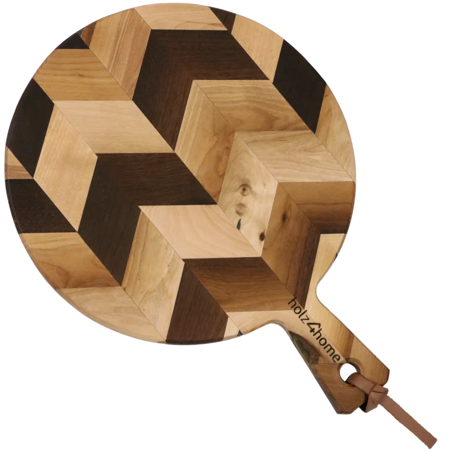 Rundes Schneidebrett | Servierbrett Birke Herringbone | Dunkel