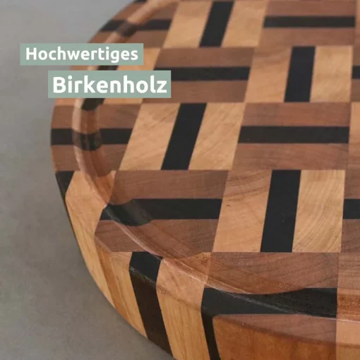 Jedes Brett wird als Einzelstück in liebevoller Handarbeit gefertigt. Das Premium Schneidebrett aus Birke ist aus europäischem Birkenholz gefertigt und von Natur aus antibakteriell.