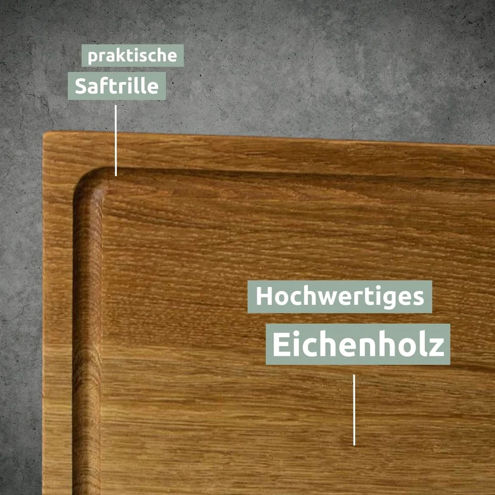 Jedes Brett wird als Einzelstück in liebevoller Handarbeit gefertigt. Das Premium Schneidebrett-Set ist aus echtem europäischem Eichenholz gefertigt und von Natur aus antibakteriell. Durch die Verwendung von hochwertigem, massivem Holz ist das Küchenbrett besonders langlebig.