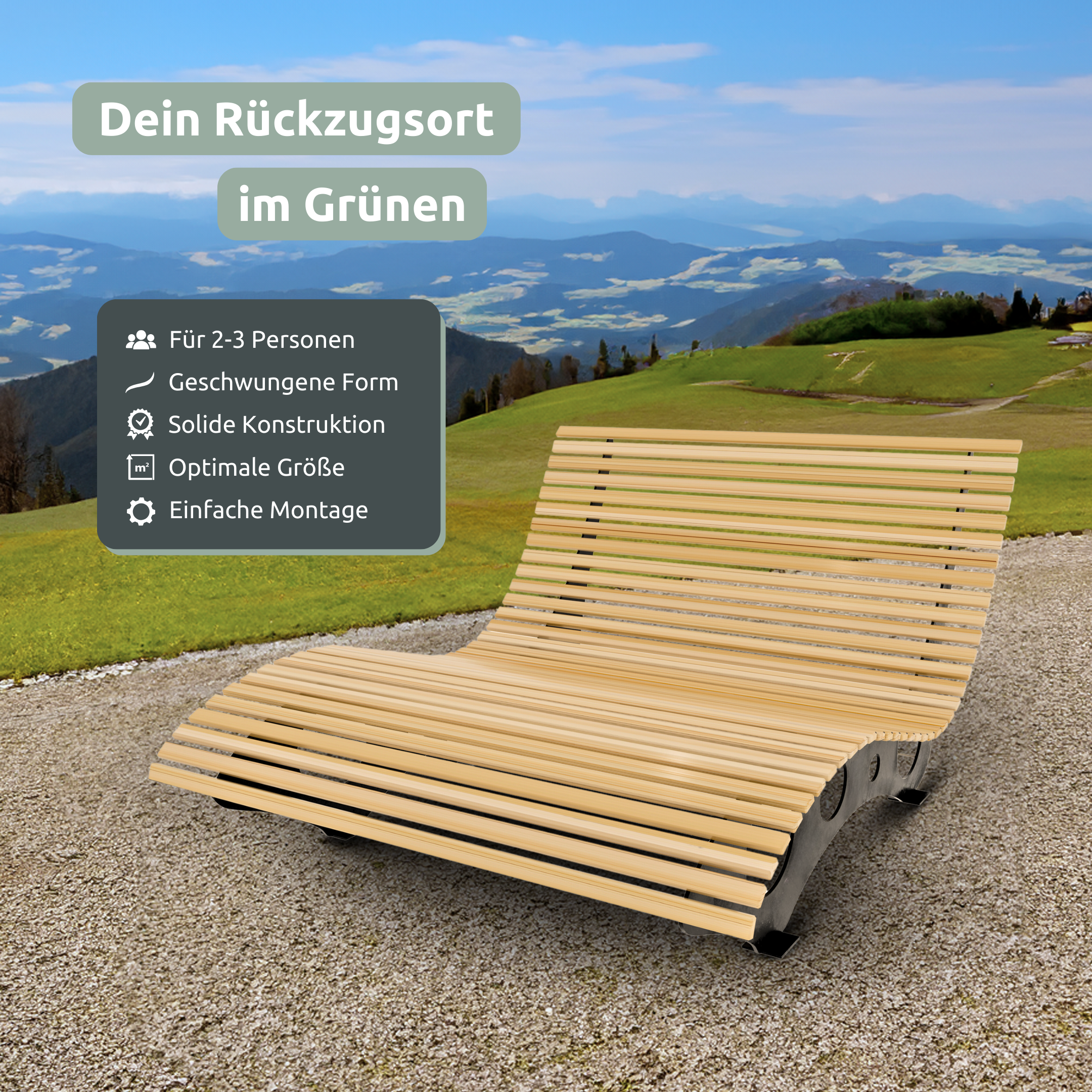 Entspanne in stilvollem Komfort und lass die Seele auf unserer ergonomischen Waldliege baumeln.