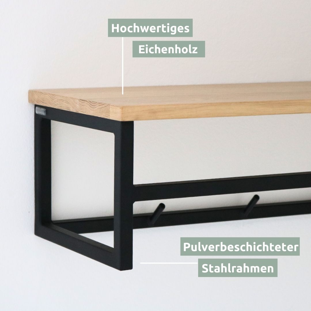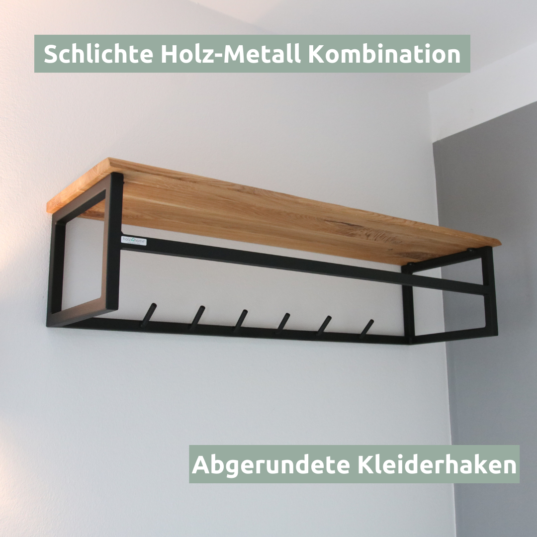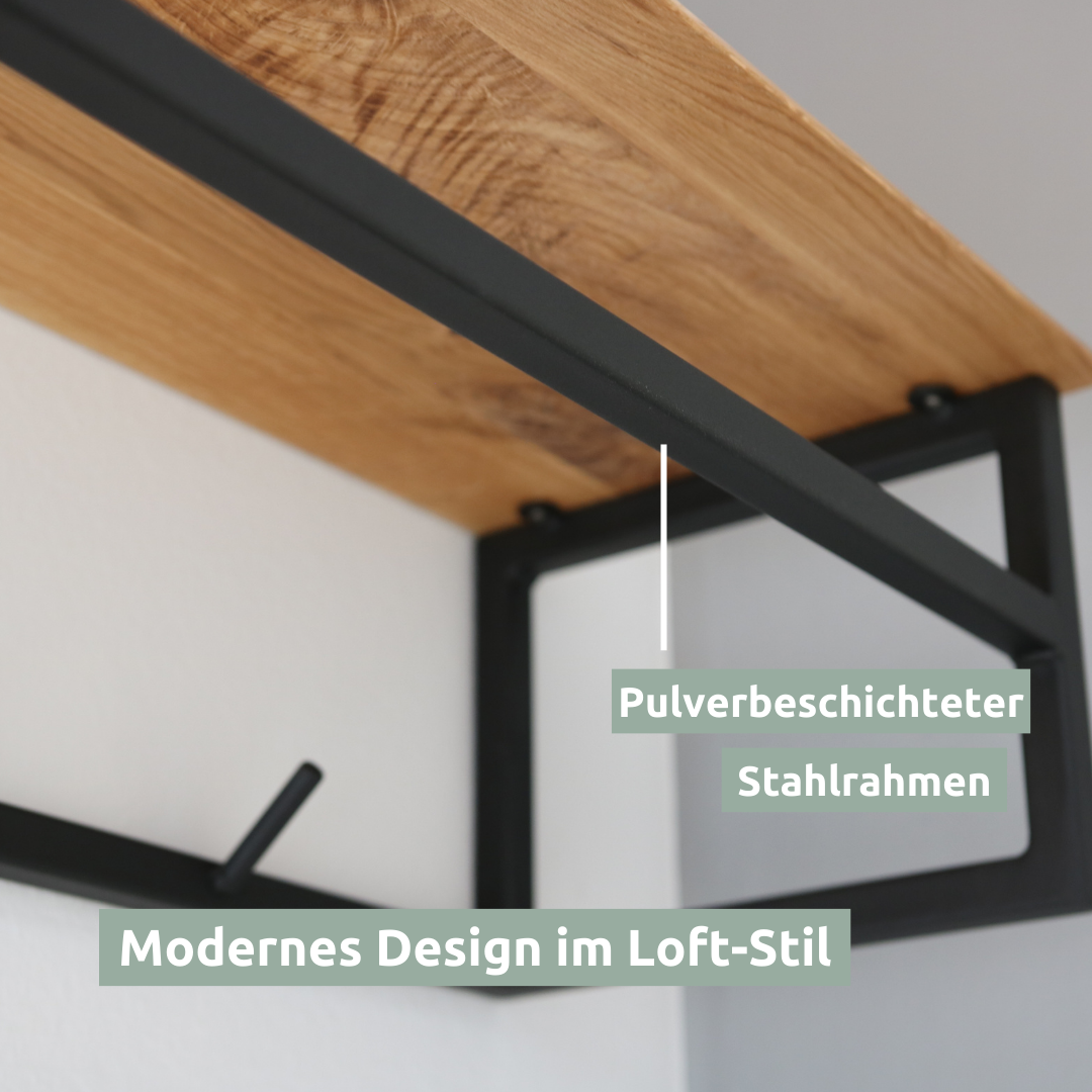 Wandgarderobe mit Ablage aus Eiche und Metall – Kleidergarderobe Flur