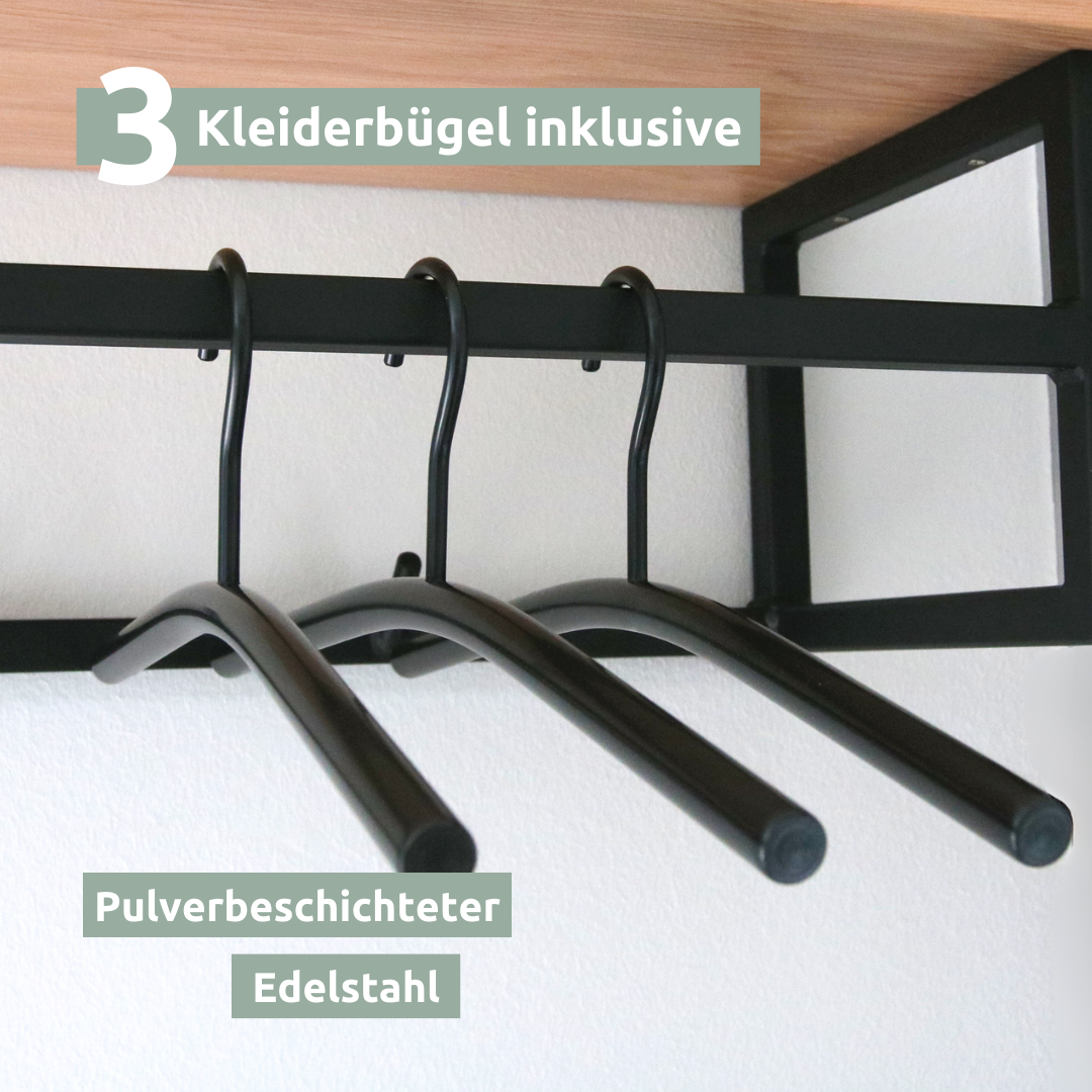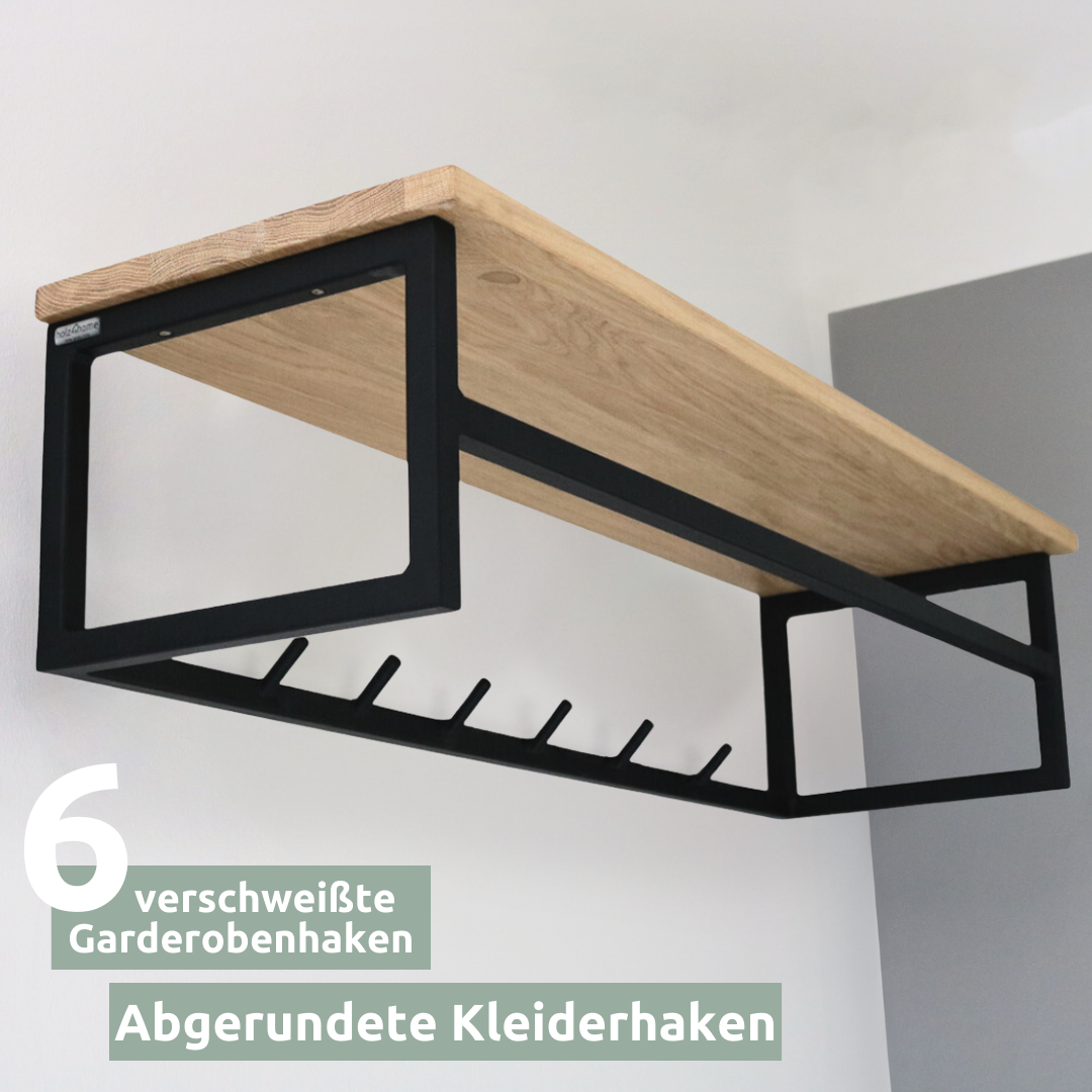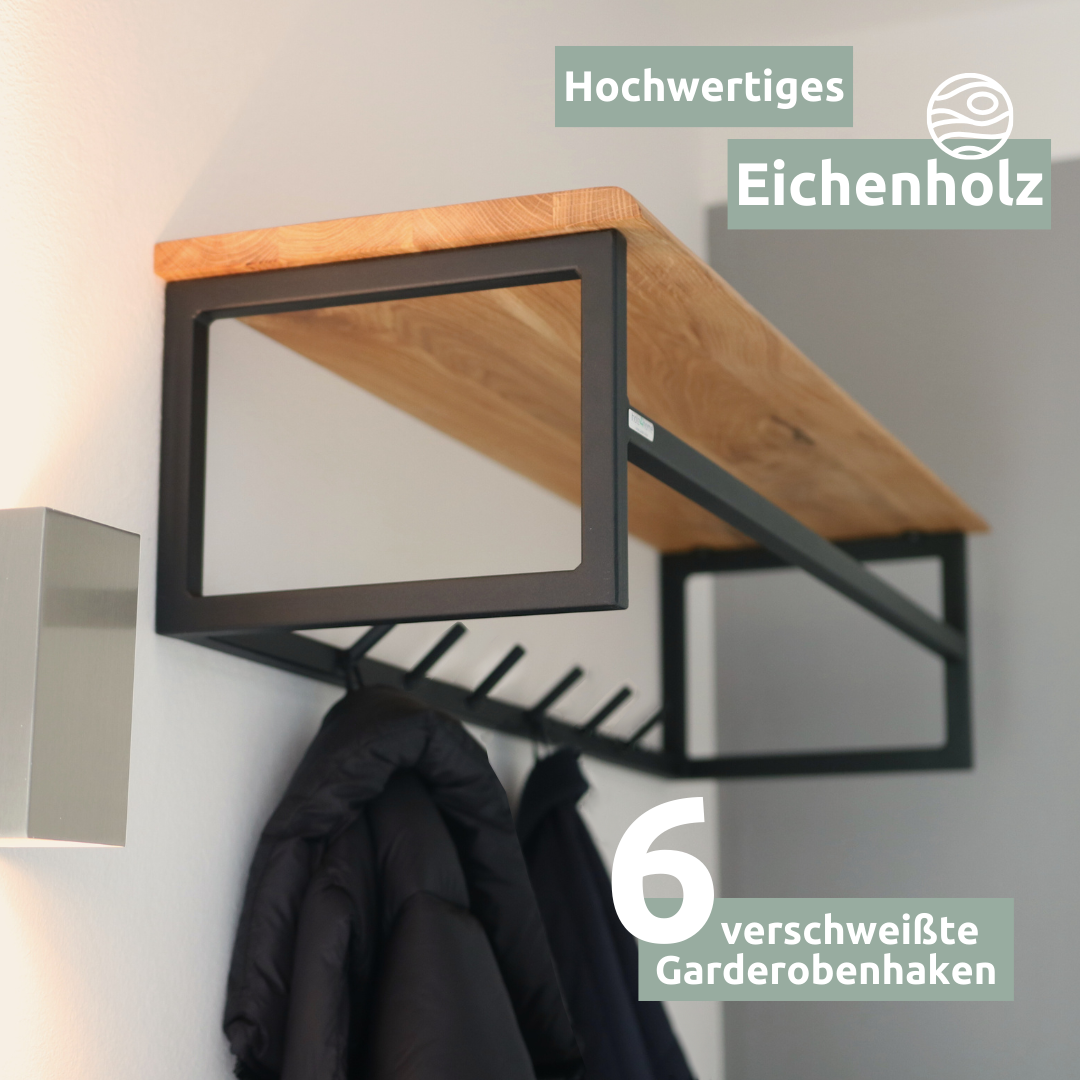 Wandgarderobe mit Ablage aus Eiche und Metall – Kleidergarderobe Flur