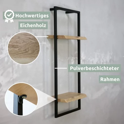 - MATERIAL: Unsere Wandregale bestehen aus einer Kombination aus hochwertig geöltem Eichenholz und einem Metallrahmen. Verfügbar Mit hellgrau- und naturgeölter Ausführung der Holzplatte.