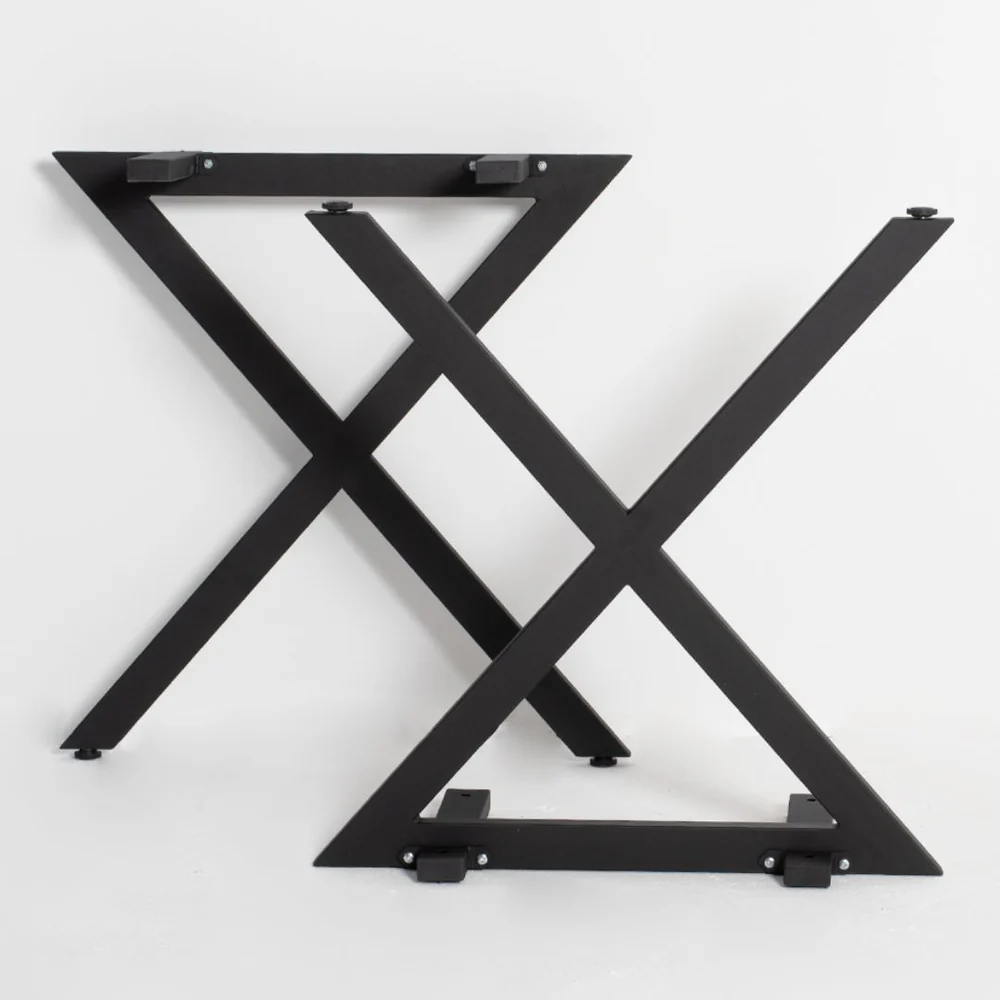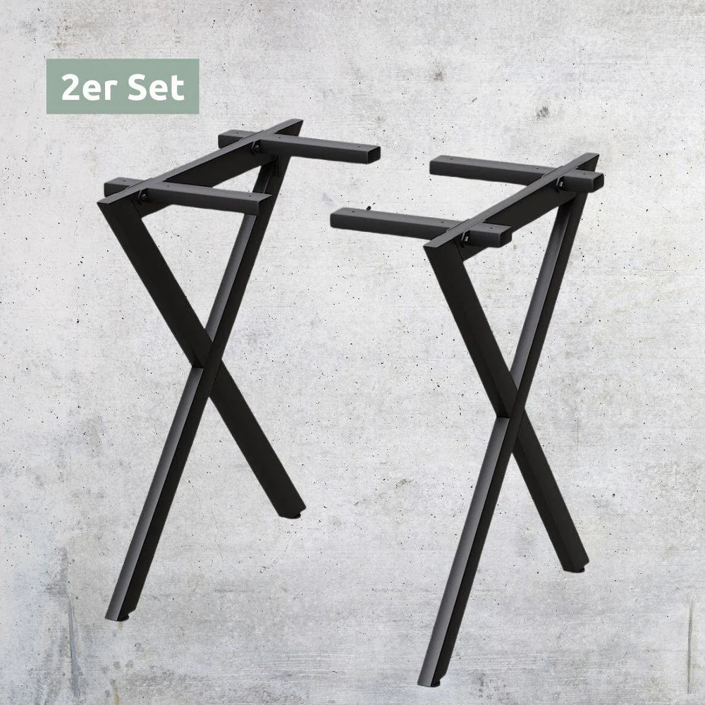 X-Struktur Tischgestell mit Querbalken Metall Schwarz | 1 Paar (2 Stück)